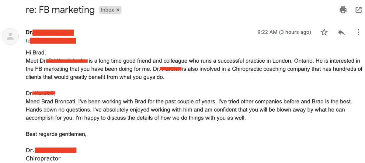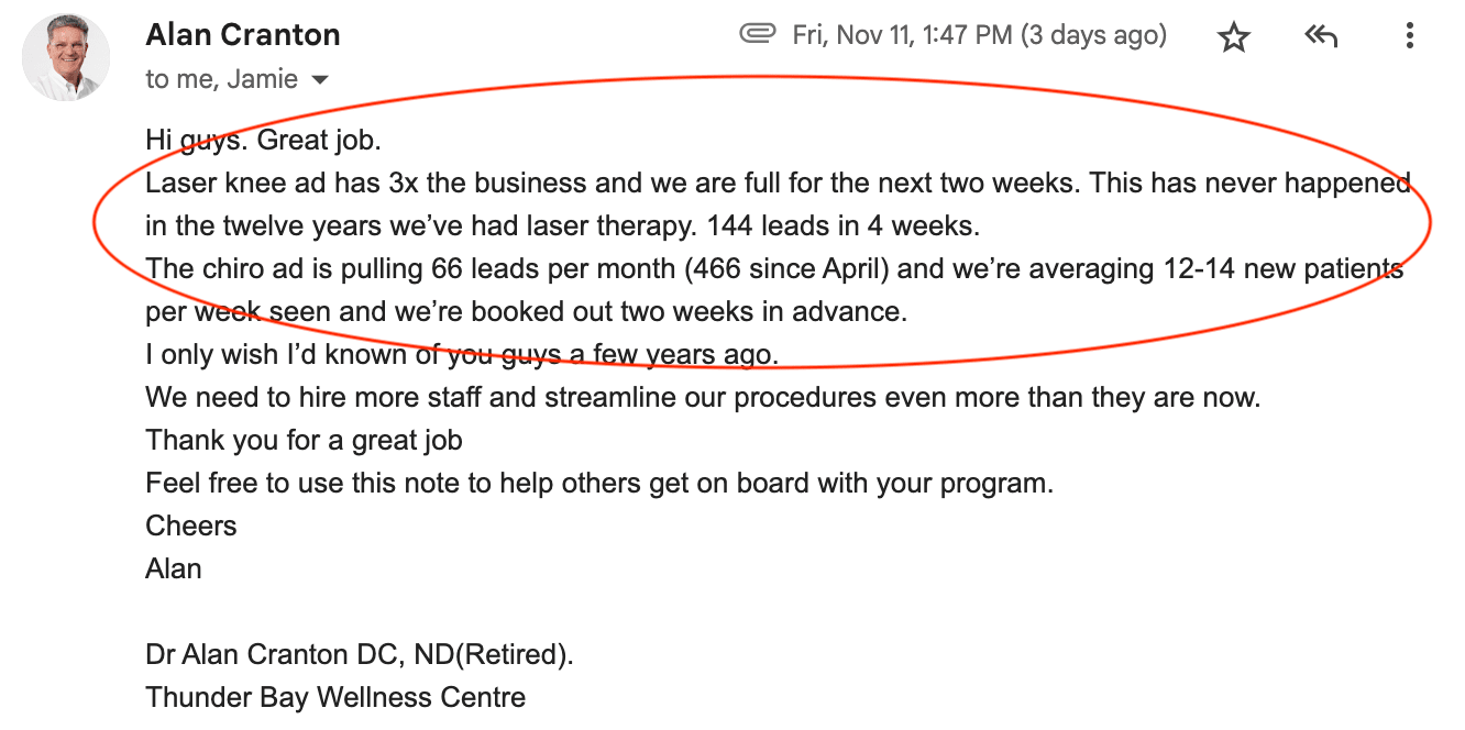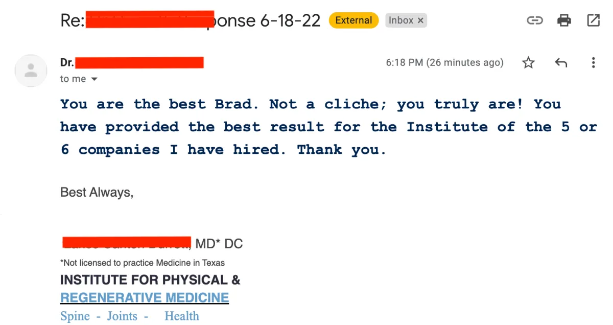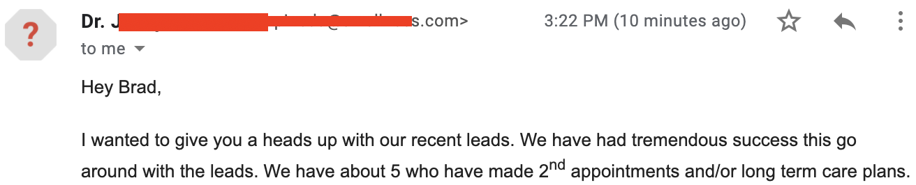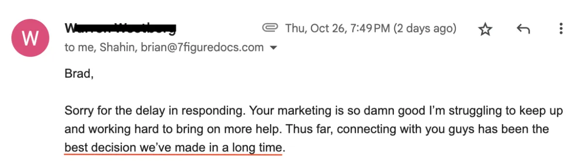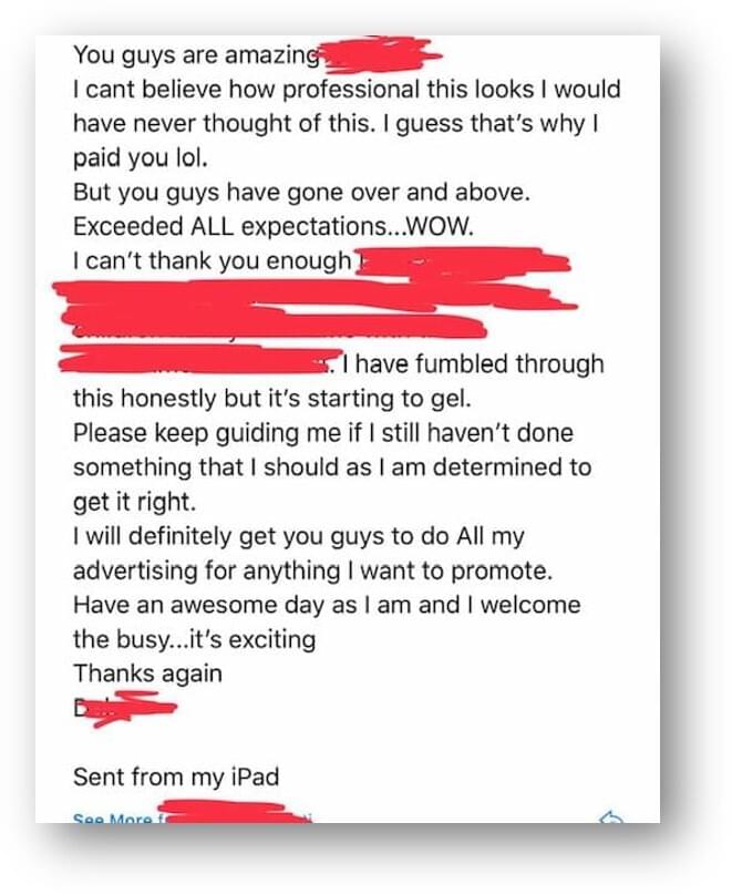 "I got burned by so many marketing companies, I’ve done everything under the sun and everyone has come up short…. This is working I’m very happy!"