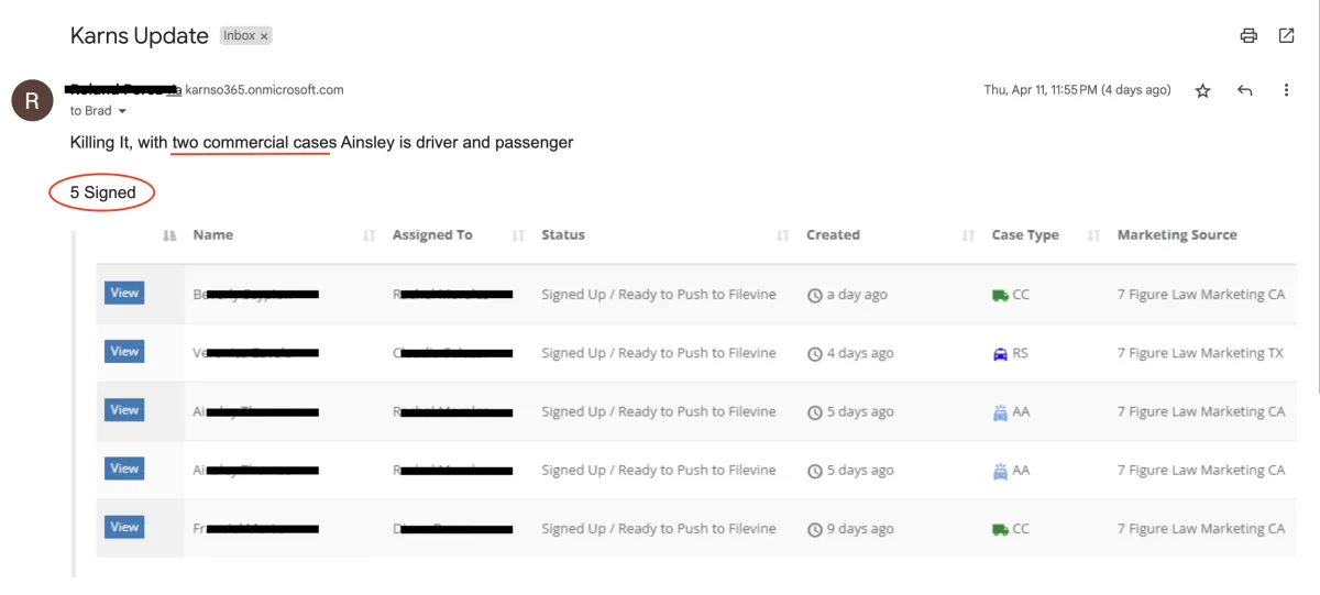 "We're probably converting in the range of twenty to thirty percent of the leads into client cases"